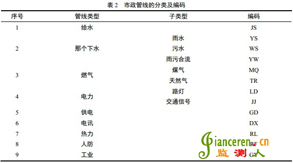 由于管線大多埋于地下,對(duì)于監(jiān)測(cè)單位很難對(duì)其進(jìn)行調(diào)查,僅能通過(guò)設(shè)計(jì)單位提供的綜合管線圖以及現(xiàn)場(chǎng)反饋的情況進(jìn)行了解。從監(jiān)測(cè)的角度來(lái)說(shuō),應(yīng)特別注意空間上與工程有緊密關(guān)系且有壓力的管線。市政管線的類(lèi)型可參考下表。
