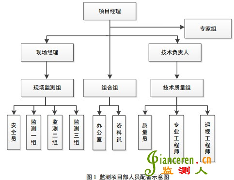 在敘述完監(jiān)測(cè)技術(shù)保證措施后,本部分應(yīng)對(duì)如何合理優(yōu)化配置相關(guān)人員,以滿足監(jiān)測(cè)工作要求, 同時(shí)兼顧經(jīng)濟(jì)原則進(jìn)行詳細(xì)介紹。建議本部分參考投標(biāo)文件中相關(guān)人員信息,通過(guò)項(xiàng)目部人員組織架構(gòu)圖與人員信息列表的形式進(jìn)行編寫(xiě),具體形式可參考圖 3.1 及表 3.5。