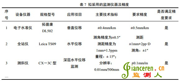 方案提到的精度一般有監(jiān)測(cè)方法的精度與監(jiān)測(cè)儀器的精度兩種,前者一般僅針對(duì)豎向和水平位移的項(xiàng)目,對(duì)其他監(jiān)測(cè)項(xiàng)目多以儀器設(shè)備或元器件的自身精度代替;后者是針對(duì)具體型號(hào)的儀器或元器件而言。