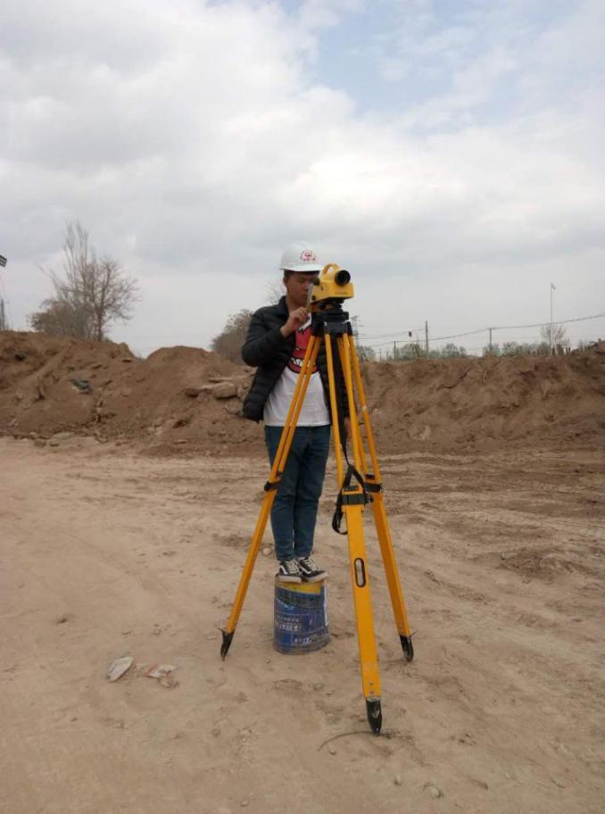 在工地上進行二等水準測量實戰(zhàn)訓練